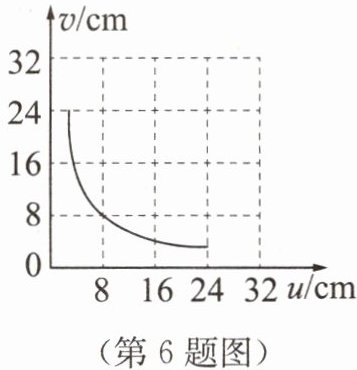6. 小涵同学在“探究凸透镜成像的规律”实验中,绘制了如图所示的图像($v$表示像距,$u$表示物距),则该凸透镜的焦距为