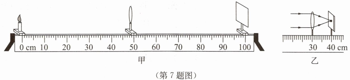 7. 小亮探究凸透镜成像规律的实验装置如图甲所示,光屏和蜡烛分别位于凸透镜两侧.