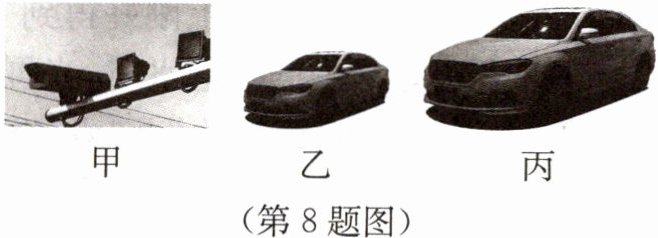 8. 如图所示是物理实践课上,老师出示的某处监控摄像头对某辆汽车经过时拍下的照片.下列分析正确的是 (