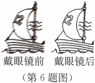 6. 如图所示是小明戴上眼镜前和戴上眼镜后观察到的远处帆船的情形,由此可以判断出小明视力存在的问题以及所戴眼镜的镜片类型是 (