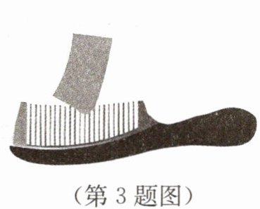3. 如图所示,用一张硬卡片先后在木梳的齿上划过,第一次快些,第二次慢些,两次划动时均保持齿的振动幅度相同,则听到的声音第二次与第一次对比,第二次(