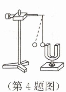 4. 如图所示,小慧同学用小锤轻敲和重敲音叉,并将正在发声的音叉轻触系在细绳上的乒乓球,听音叉发声的同时观察乒乓球被弹开的幅度变化。她想探究的问题是(