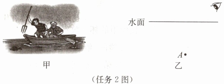 问题 1:图甲中的小孩如何才能叉到鱼?请在图乙中通过作图解释.