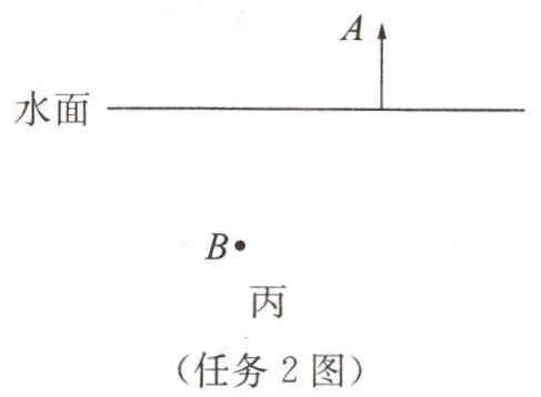 问题 2:潜水员在水中看到岸上的树变高,如图丙所示,A 为树尖的位置,B 为潜水员眼睛的位置.请通过作图解释这个现象.