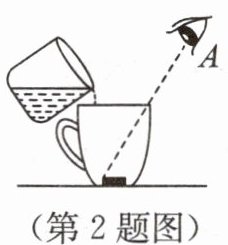 2. 小明给弟弟变了个魔术,他将装有一枚硬币的杯子放在弟弟面前,如图所示,弟弟在 A 处看不到硬币,这是因为光是沿