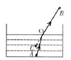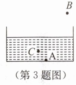 3. 如图所示,装有水的烧杯底部有一枚硬币 A,眼睛在 B 点处看到硬币在 C 点处.请画出人眼看到硬币的光路图.