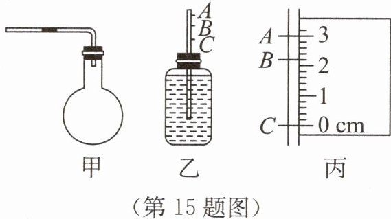 15. 在学习了温度计的相关知识后,某同学开展了“自制温度计”的项目化学习活动。他用生活中常见的器材设计并制作了如图所示的甲、乙两款温度计。