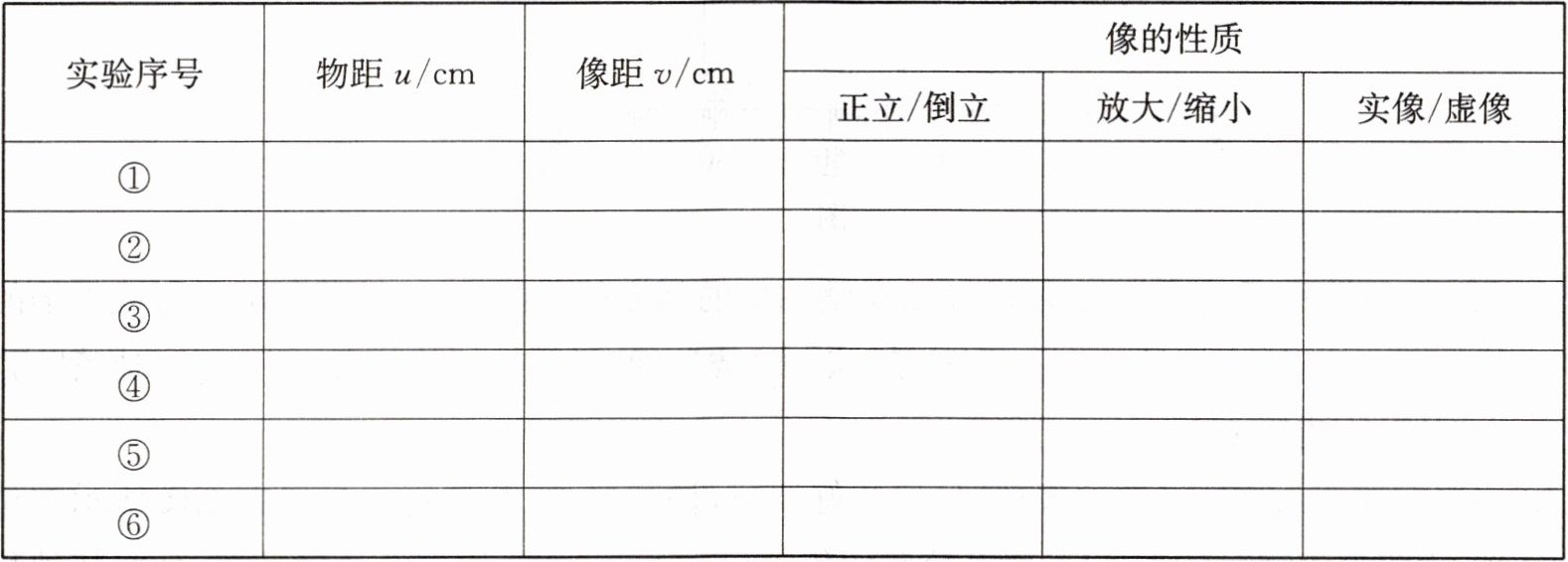 | 实验序号 | 物距$u/cm$ | 像距$v/cm$ | 像的性质 |
