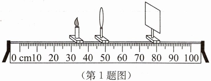 1. 在“探究凸透镜成像的规律”实验中,光具座上各元件位置如图所示,此时光屏承接到一个清晰的像.此时,$u=$