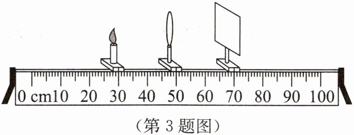 3. 小明在探究凸透镜成像的规律时,安装好器材,调节蜡烛、凸透镜与光屏在如图所示的位置,在光屏上得到清晰的像,则凸透镜的焦距为