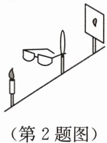 2. 如图所示,小桃在做“探究凸透镜成像的规律”实验时,把老师的眼镜放在蜡烛和凸透镜之间,发现光屏上烛焰的像变模糊了;接着,她再将光屏靠近凸透镜,又能在光屏上看到烛焰清晰的像。下列关于老师的眼睛和眼镜的说法正确的是(
