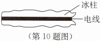 10. 某地发生了特大冰灾,地面覆盖着厚厚的积雪,高压电线上凝结了厚厚的冰柱,如图所示,很多电线和高压电塔被拉断、压垮。冰灾期间,经过一个无雨、无雪的寒冷夜晚,小明发现户外电线上的冰柱变粗了,你认为冰柱增粗的主要原因是(