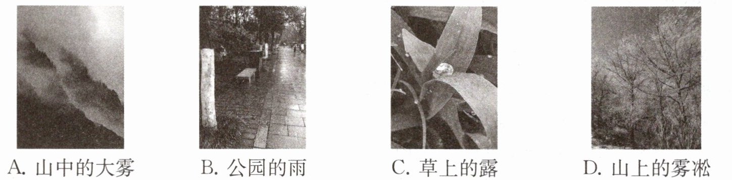1. 春节后气温骤降,人们惊讶地发现天空中下起了“冰粒”。气象专家解释这种“冰粒”为“霰”,是高空中的水蒸气遇到冷空气凝结形成的。下列自然现象与“霰”的形成原因相同的是(