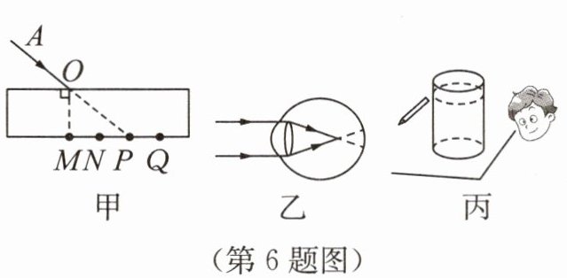 6. 如图甲所示,一束激光AO由空气斜射入玻璃砖,折射后从另一侧面射出,其出射点可能是图中的