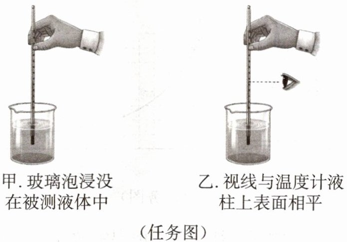 2. 测量时,应使温度计的玻璃泡与被测物体充分接触.测量液体温度时,玻璃泡要浸没在被测液体中,不要碰到容器底或容器壁,如图甲所示.