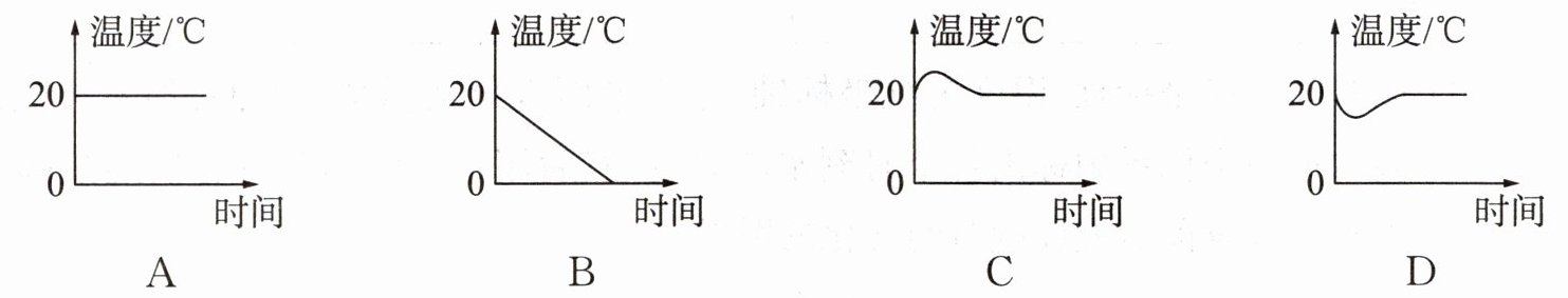 3. 当室内温度为20℃时,用浸有少量酒精的棉花裹在温度计的玻璃泡上,随着酒精的迅速蒸发,下列基本反映了温度计的读数随时间变化的是(