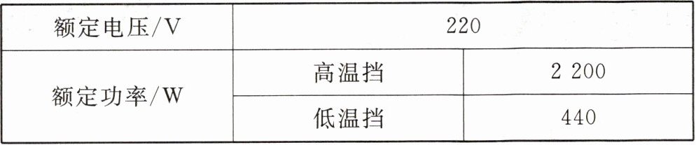 则低温挡电流$I_{低}=\frac{U}{R}=\frac{220V}{110\Omega}=2A$。