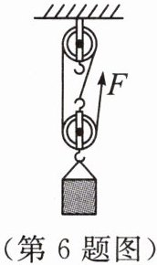 6. 如图所示,滑轮组提起重 570 N 的货物,每个滑轮重 30 N,重物以 0.2 m/s 的速度匀速上升了 10 s,不考虑绳重和摩擦,求: