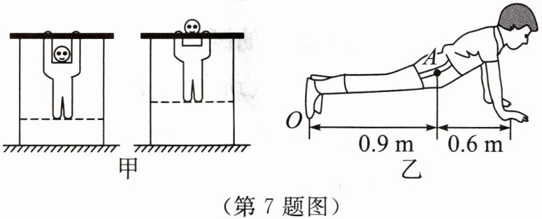 7. (1)如图甲所示为小强同学引体向上的示意图,如果要粗略地测算他的功率,需要的测量工具有体重计(或磅秤)、秒表和