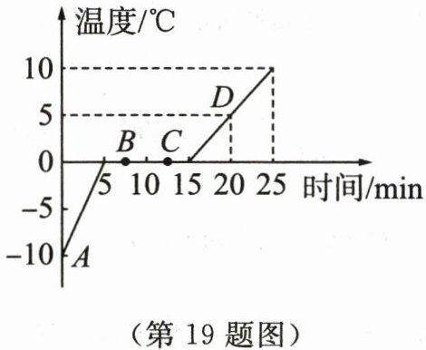 19. 如图所示是利用酒精灯加热使冰熔化为水的过程中,温度随时间的变化图像,在此过程中物体在 $A$ 点内能