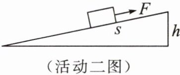 2. 如图,在斜面上将一个质量为 0.4 kg 的物体,从底端沿斜面匀速拉到顶端,所用时间为 4 s,斜面长 $ s = 1 $m,高 $ h = 0.2 $m,该斜面的机械效率为80%,则拉力所做的总功是