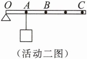 3. 如图,一根均匀的细木棒 $ OC $ 中 $ OA= \frac{1}{4}OC $, $ B $ 为 $ OC $ 的中点,在 $ C $ 点施力将挂在 $ A $ 点的重 180 N 的物体绕 $ O $ 点匀速提升 0.2 m,木棒的机械效率为90%,提升该物体做的有用功是____
