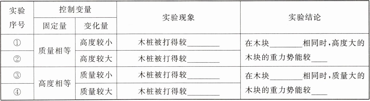 |③|高度相等|质量较小|木桩被打得较