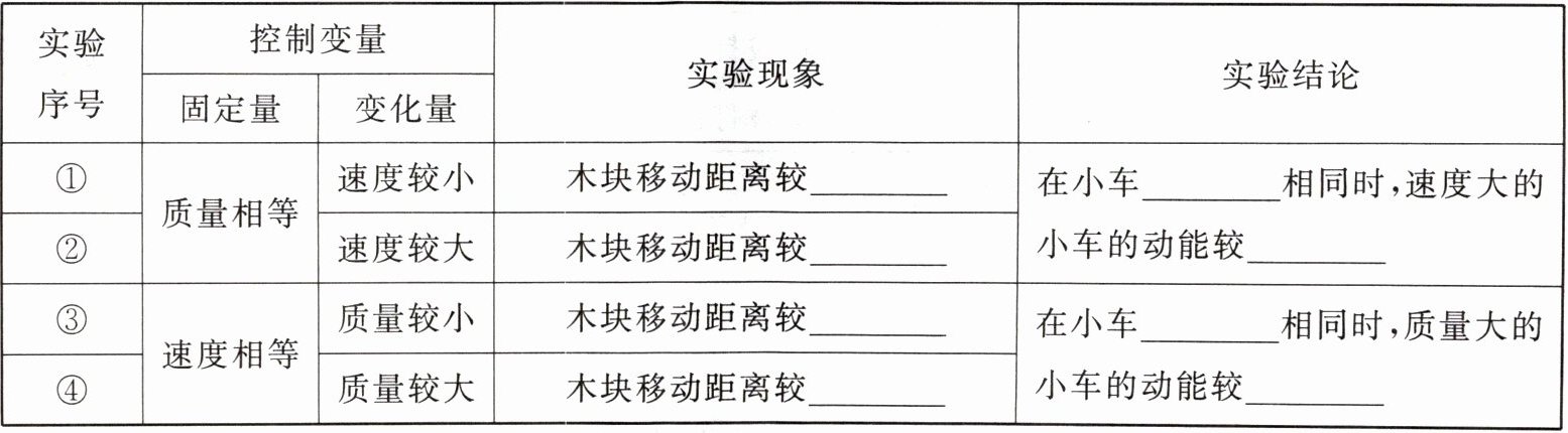 | ||③|速度相等|质量较小|木块移动距离较