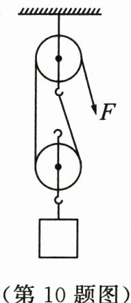 10. 如图所示,在大小为 500 N 的拉力 F 作用下,滑轮组在 2 s 内将800 N 的重物匀速提升了 1 m,则在此过程中,下列说法中正确的是(