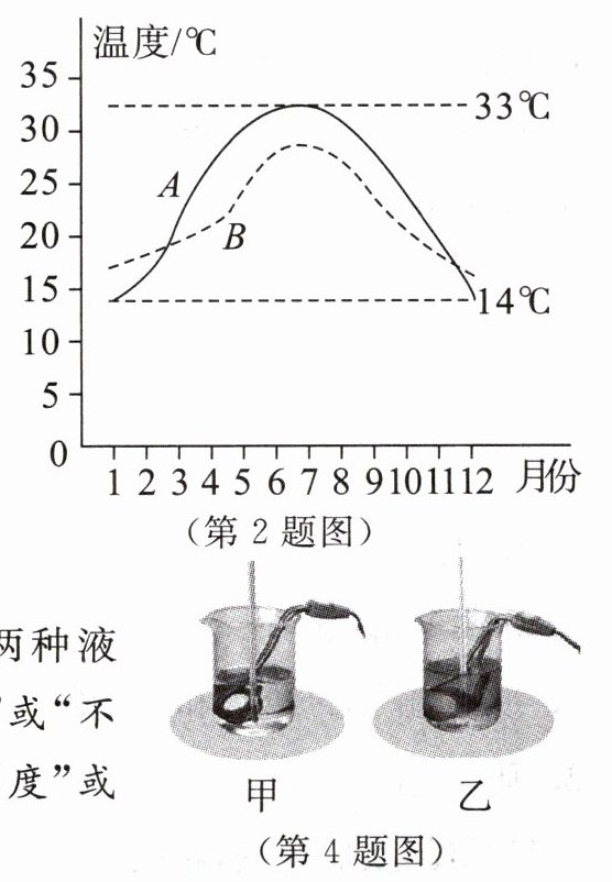 2. 如图所示是某一沿海城市和某一内陆城市的年气温变化曲线.由图像可以看出,在一年中,曲线A表示的城市气温变化较