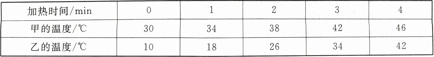 液体较为合理.(均选填“甲”或“乙”)|加热时间/min|0|1|2|3|4|
