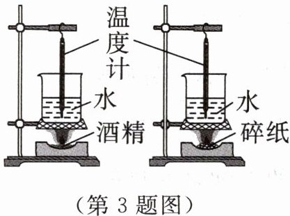 3. 利用如图所示的装置,运用控制变量法,通过观察现象即可比较酒精和碎纸热值的大小,为完成实验,要求 (