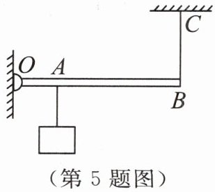 5. 如图,轻质均匀杆 OB 长 70 cm,能绕 O 点转动,B 端用细绳 BC 悬于 C 点,有一重 49 N 的铁块挂在 A 点,OA 长 20 cm.
