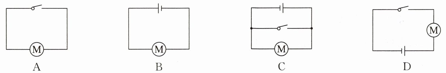 2. 小明设计了一个由干电池供电、开关控制微型电动机工作的简单电路,下列电路图正确的是(