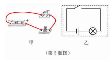 - (1)用笔画线(铅笔)代替导线将图甲中的电源、灯泡、开关连接起来,使灯泡发光,并在图乙虚线框内画出相应的电路图。