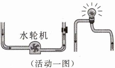 1. 如图所示,水流流过水轮机,能使水轮机转动起来,与此类似,电流流过灯丝,能使小灯泡发光。这里用到的物理研究方法是