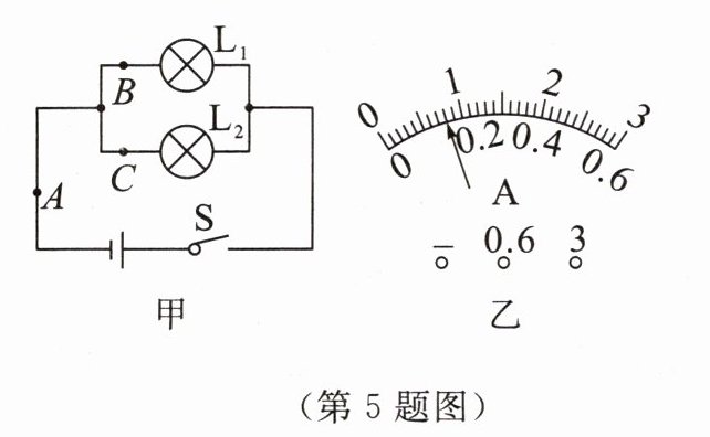 5. 在“探究并联电路电流的特点”的实验中,小华设计了如图甲所示的电路进行实验。