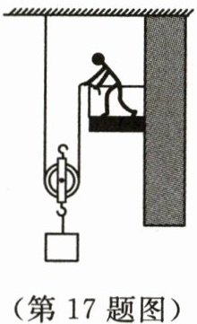 17. 如图所示,物体重 240 N,动滑轮重 20 N,工人用 135 N 的拉力将物体匀速提升 2 m,用了 10 s,此过程中有用功是