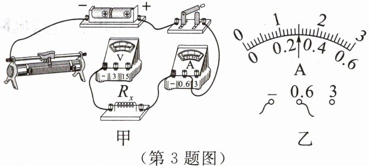 3. 在测量阻值约为 $ 5 Ω $ 的定值电阻 $ R_x $ 的实验中,小明用如图甲所示的器材进行实验,电源电压保持不变.