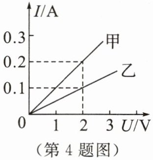 4. 如图所示是甲、乙两导体的电流与电压的关系图像,由图可知,甲的电阻是
