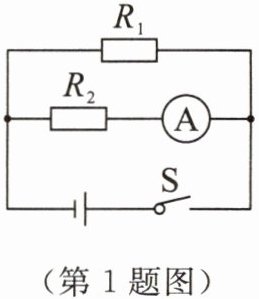 1. 在如图所示的电路中,$R_{1}= 15\ \Omega$,$R_{2}= 10\ \Omega$,闭合开关后电流表的示数为$0.3\ A$,则电源电压为