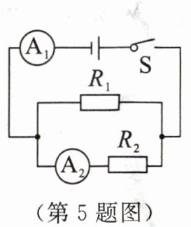 6. 在如图所示的电路中,电源电压不变,$R_{1}= 5\ \Omega$,$R_{2}= 25\ \Omega$。