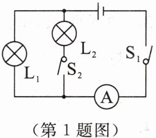 1. 在如图所示的电路中,电源电压保持不变,闭合开关$S_{1}$、$S_{2}$,$L_{1}$、$L_{2}$两灯泡都发光;当把开关$S_{2}$断开时,灯泡$L_{1}$的亮度及电流表示数的变化情况是(