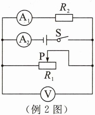 例2 在如图所示的电路中,电源电压保持不变,开关$S$闭合后,在滑动变阻器的滑片$P$向右移动过程中,下列说法正确的是(