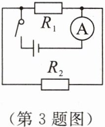 3. 在如图所示的电路中,$R_{1}= 2\ \Omega$,$R_{2}= 6\ \Omega$,开关闭合后,电流表的示数为$4.8\ A$,求:
