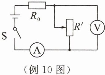 例 10 如图所示,电源电压保持不变,$ R_{0} $ 为定值电阻。闭合开关,当滑动变阻器的滑片在某两点间移动时,电流表示数的变化范围为 $ 0.5 \sim 1.5 \, A $,电压表示数的变化范围为 $ 3 \sim 6 \, V $,则定值电阻 $ R_{0} $ 的阻值及电源电压分别为多少?