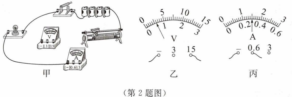 (4) 排除故障后继续实验,滑片 P 移到某一位置时,电压表示数如图乙所示,为测量灯泡的额定功率,应将滑片 P 向