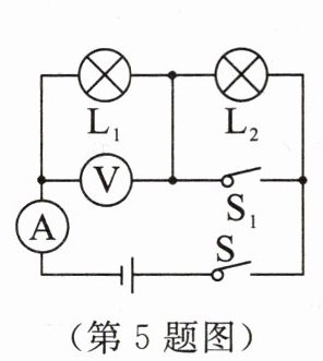 5. 如图所示,电源电压不变,灯泡 $ L_1 $ 上标有“6 V 3 W”字样.当 $ S $、$ S_1 $ 均闭合时, $ L_1 $ 正常发光,电流表的示数是
