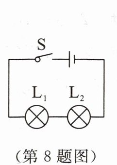 8. 如图所示,闭合开关S后,发现灯 $ L_1 $ 较亮,灯 $ L_2 $ 较暗,其原因是 (
