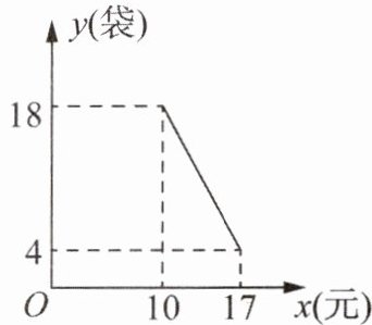 10. (2025·海州区一模)某超市以每袋 $ 8 $ 元的成本价购进一些糖果,根据前期销售情况,每天销售量 $ y $ (袋)与该商品定价每袋 $ x $ (元)是一次函数关系,如图所示.